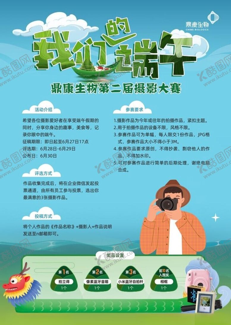 像素,端午海报是由平面广告设计师lll2518上传,浏览本次作品的您可能还对海报,摄影,端午,蓝天,白云,粽子,卡通人物,相机,奖品,活动海报,展板,展架,蓝色底,龙舟,摄影的人,平面广告,,平面广告感兴趣。