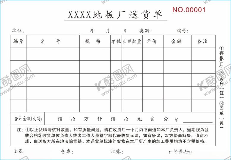 酷图网为你提供精美好看的素材模板下载,本次平面广告作品主题是送货单,素材ID编号是80037402170338415986,格式是CDR,建议使用打开编辑,或是"通过网上查询一下对应格式的打开软件";该送货单素材大小是152.5 KB,素材主要颜色以白色为主,素材分享方式属于