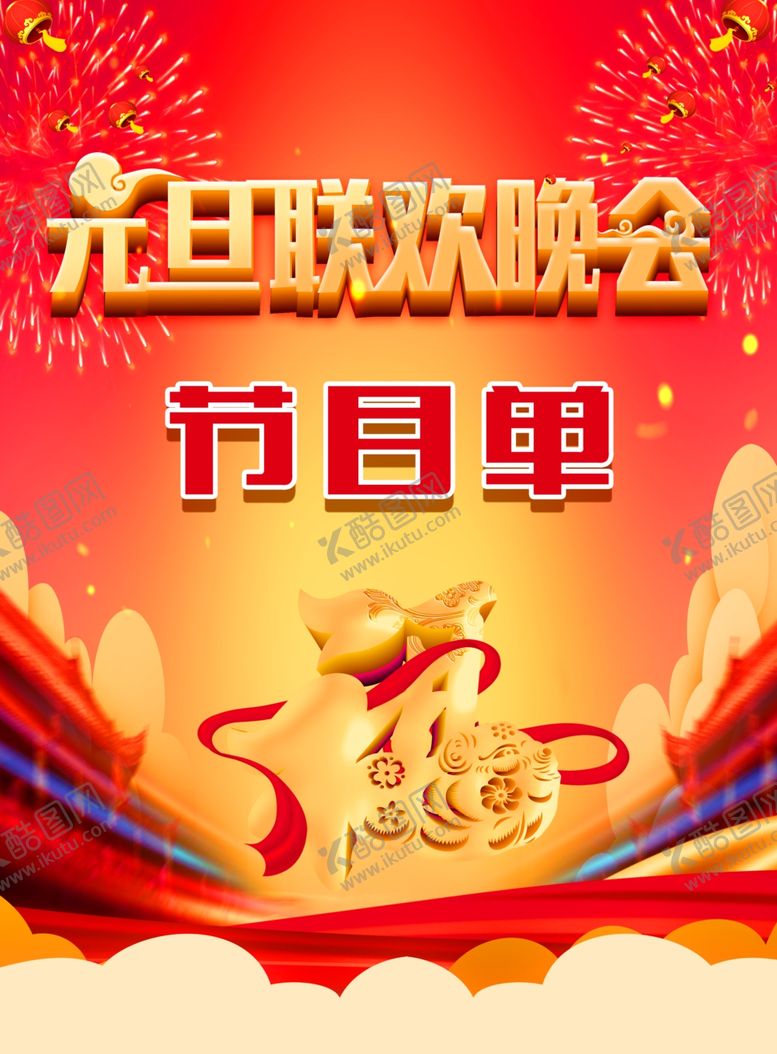 共享素材,尺寸大小是2480*3366像素,元旦联欢晚会节目单是由平面广告设计师dsq1980上传,浏览本次作品的您可能还对元旦节目单,元旦联欢晚会,晚会节目单,元旦晚会,节目单,平面广告,,平面广告感兴趣。