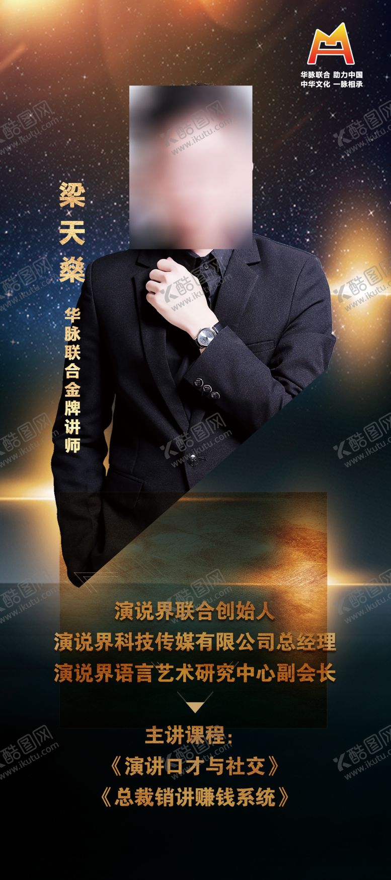 酷图网为你提供精美好看的素材模板下载,本次平面广告作品主题是金牌讲师介绍展架,素材ID编号是81225910072310207983,格式是PSD,建议使用打开编辑,或是"通过网上查询一下对应格式的打开软件";该金牌讲师介绍展架素材大小是173.45 MB,素材主要颜色以黑色为主,素材分享方式属于