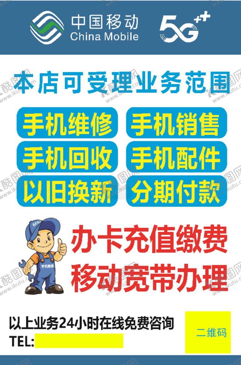 共享素材,尺寸大小是0*0像素,中国移动手机维修是由平面广告设计师kobe_lilei上传,浏览本次作品的您可能还对移动,中国移动,移动海报,手机维修,手机维修海报,手机销售,手机销售海报,手机回收,手机配件,以旧换新,分期付款,充值缴费,移动宽带,移动宽带办理,卡通人物,卡通小哥,手机海报,手机,,平面广告,,平面广告感兴趣。