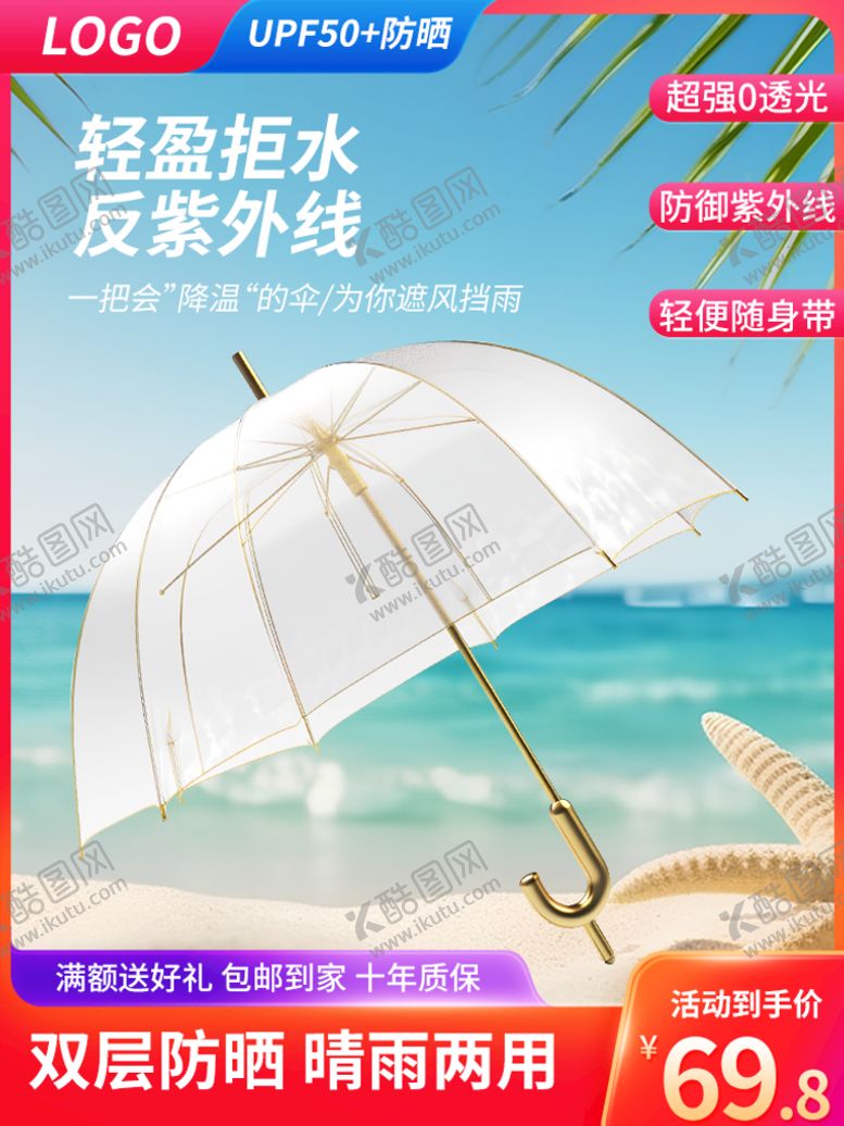 共享素材,尺寸大小是750*1000像素,电商淘宝防晒用品夏季遮阳伞雨伞是由平面广告设计师liongliong586上传,浏览本次作品的您可能还对电商,淘宝,防晒,防晒伞,家居日用,夏季,遮阳伞,主图,平面广告,,平面广告感兴趣。