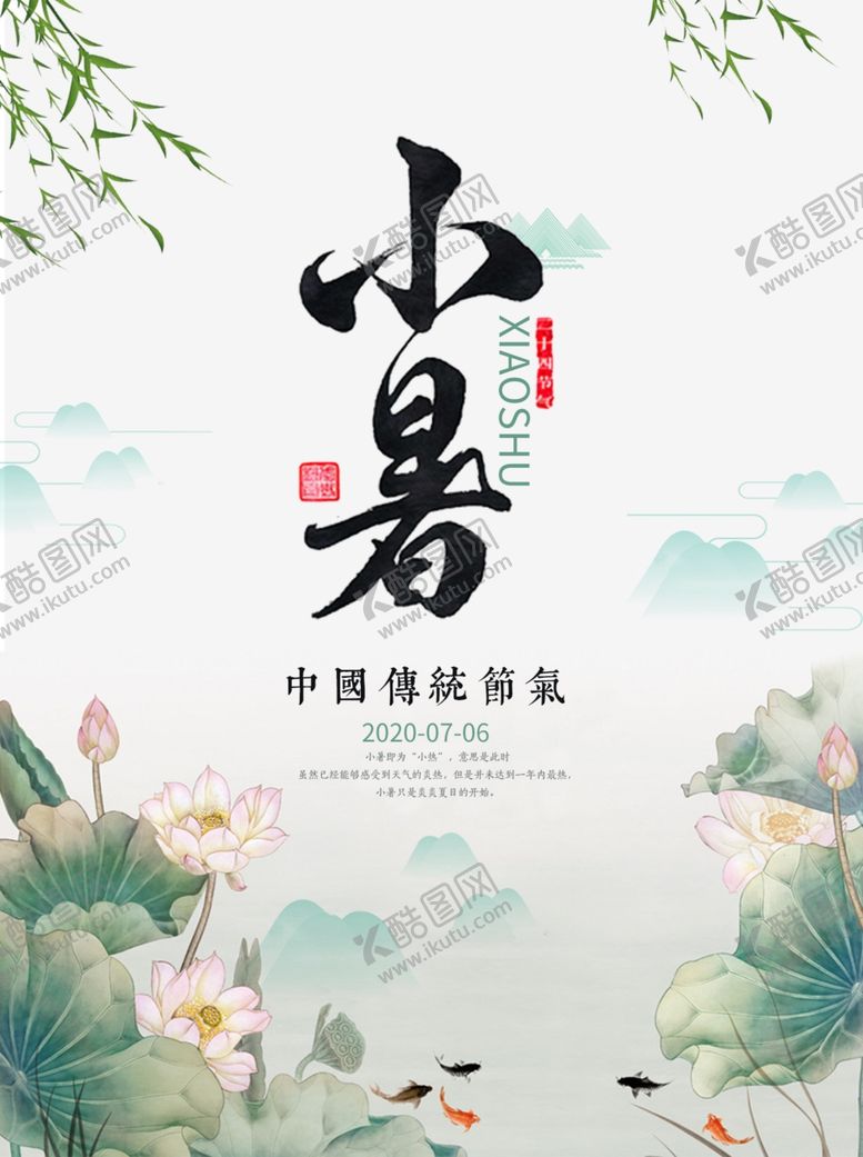 共享素材,尺寸大小是1500*2011像素,小暑中国传统节气夏天海报是由平面广告设计师dvdpp上传,浏览本次作品的您可能还对小暑,中国传统节气,夏天海报,荷花素材,杨柳,平面广告,,平面广告感兴趣。