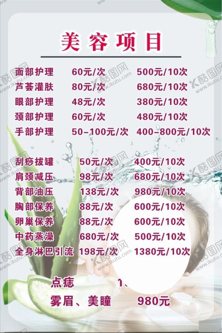 像素,美容价目表是由平面广告设计师dhgczjd上传,浏览本次作品的您可能还对美容,价目表,芦荟,40x60,灰色,平面广告,,平面广告感兴趣。