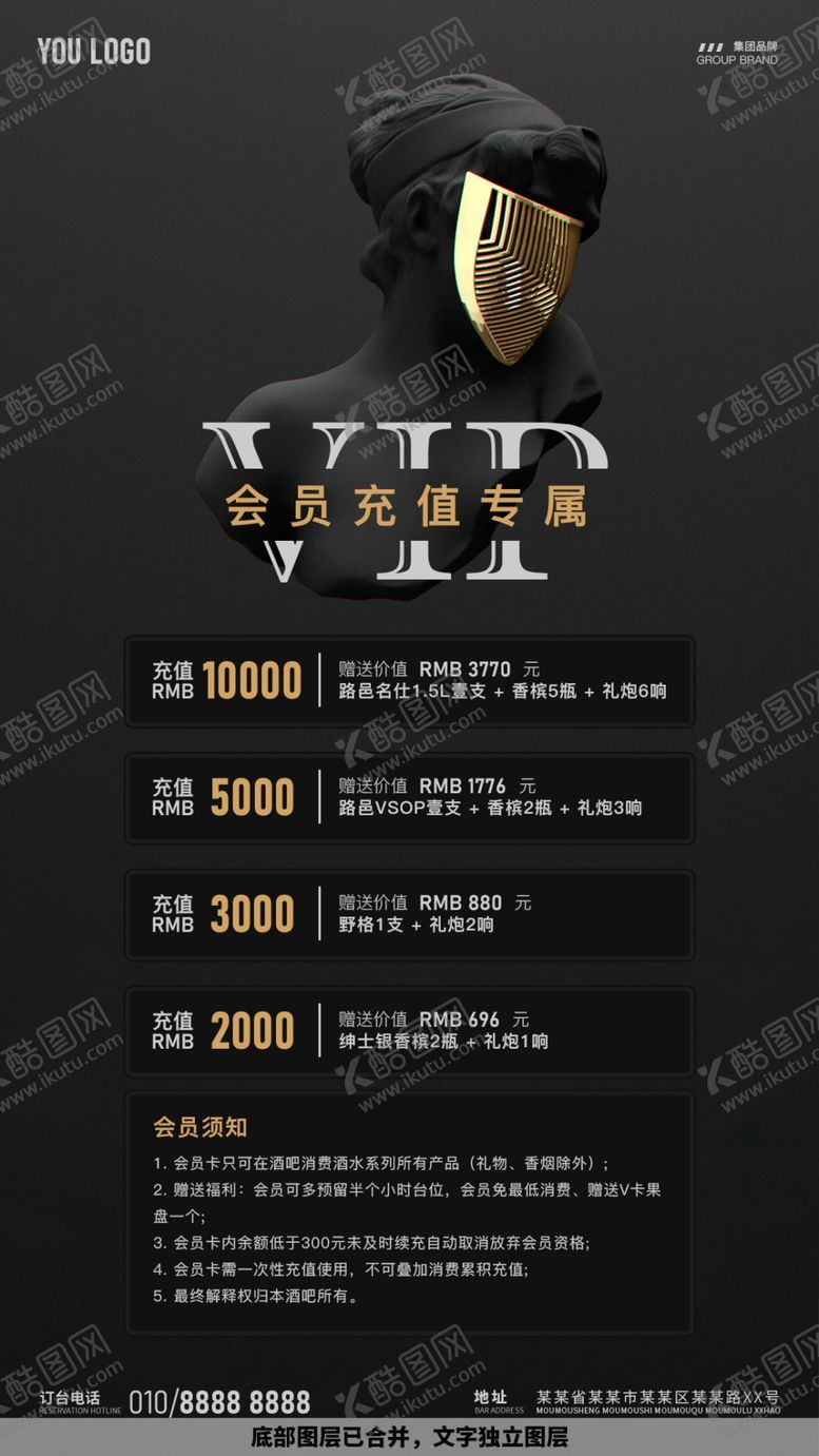酷图网为你提供精美好看的素材模板下载,本次平面广告作品主题是酒吧夜店会员充值海报,素材ID编号是84160309220311535647,格式是PSD,建议使用打开编辑,或是"通过网上查询一下对应格式的打开软件";该酒吧夜店会员充值海报素材大小是11.81 MB,素材主要颜色以黑色为主,素材分享方式属于