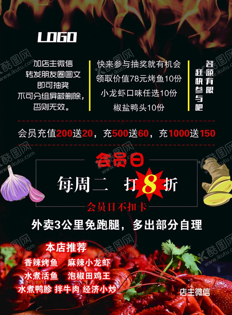 原创共享素材,尺寸大小是2480*3366像素,小龙虾宣传单促销活动海报是由平面广告设计师GYF463878110上传,浏览本次作品的您可能还对小龙虾,宣传单,促销,活动,海报,设计广告,,平面广告,,平面广告感兴趣。