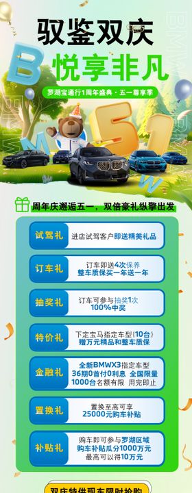 共享素材,尺寸大小是2362*9167像素,BMW周年店庆五一特价车宣传海报是由平面广告设计师wangxin3163上传,浏览本次作品的您可能还对海报,长图,汽车,宝马,春季,五一,特价车,优惠,活动,,平面广告,,平面广告感兴趣。