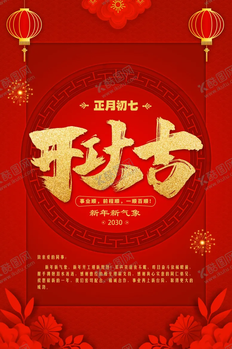 原创共享素材,尺寸大小是3543*5315像素,开工大吉是由免抠元素设计师Test_518上传,浏览本次作品的您可能还对开工海报,开工展板,新春,红灯笼,喜庆,开工门贴,红色背景,喜庆背景,免抠元素,,免抠元素感兴趣。