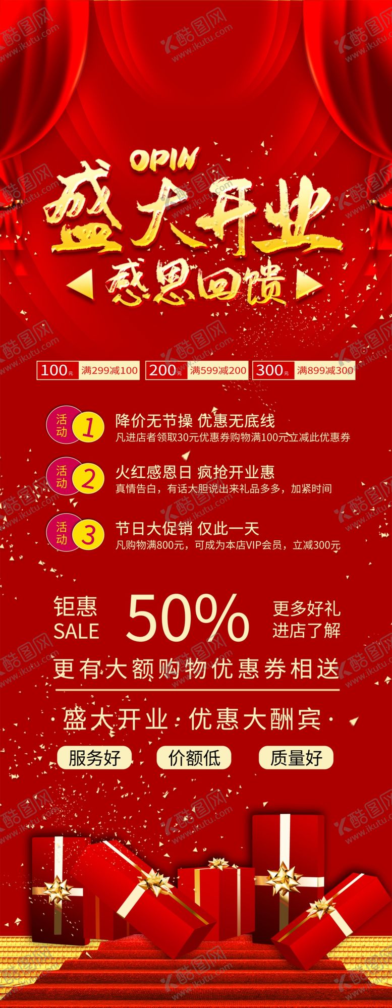 共享素材,尺寸大小是2646*6804像素,盛大开业感恩回馈易拉宝是由平面广告设计师yuqiang521上传,浏览本次作品的您可能还对盛大开业,感恩,易拉宝,礼物,红色,金色,平面,平面广告,,平面广告感兴趣。