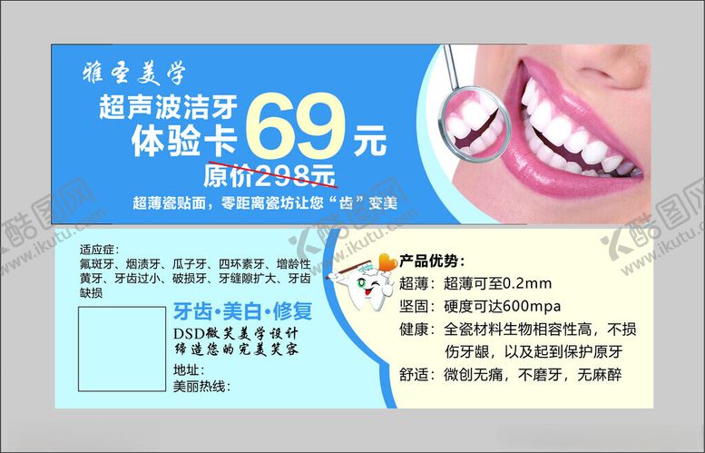 酷图网为你提供精美好看的素材模板下载,本次平面广告作品主题是口腔代金券牙齿代金券美白,素材ID编号是86204901270244095523,格式是CDR,建议使用打开编辑,或是"通过网上查询一下对应格式的打开软件";该口腔代金券牙齿代金券美白素材大小是7.07 MB,素材主要颜色以粉色为主,素材分享方式属于