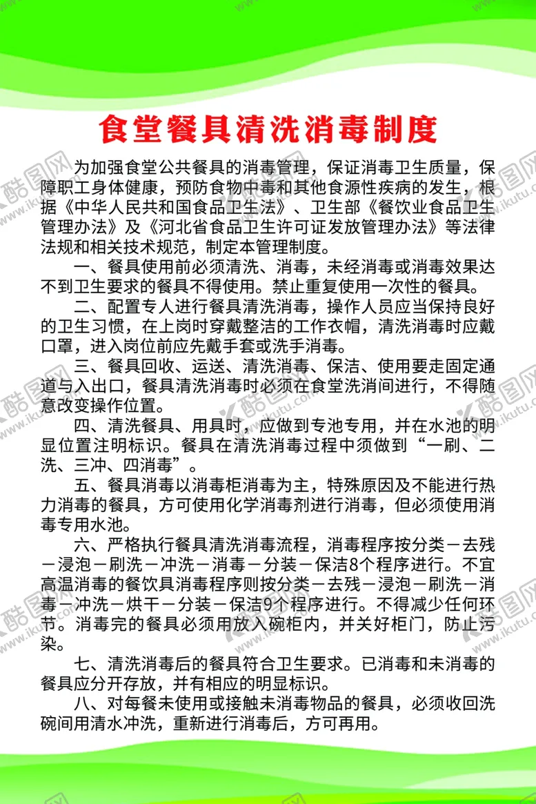 原创共享素材,尺寸大小是1575*2362像素,餐具清洗消毒制度是由平面广告设计师ljh163com上传,浏览本次作品的您可能还对食堂餐具,清洗消毒,制度,绿色展板,食堂卫生,学校食堂,卫生安全,平面广告,,平面广告感兴趣。