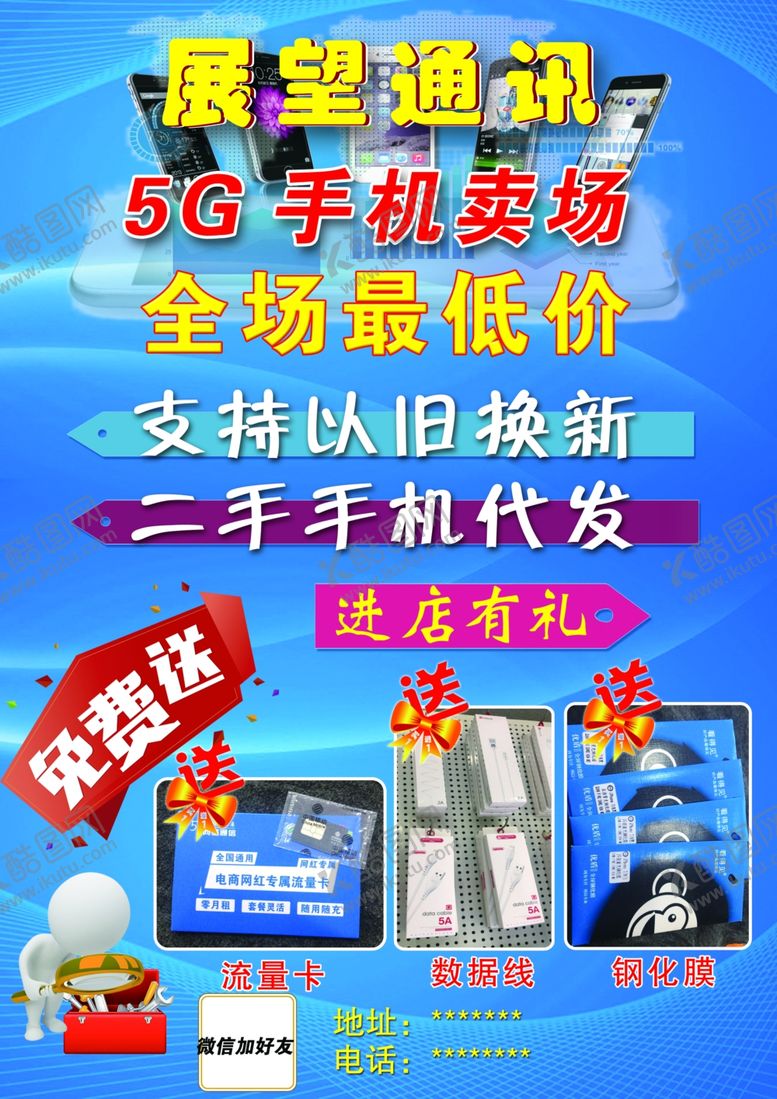 共享素材,尺寸大小是2480*3508像素,手机宣传单是由平面广告设计师huimiandiadia上传,浏览本次作品的您可能还对手机,宣传单,蓝色,图片,5G,平面广告,,平面广告感兴趣。