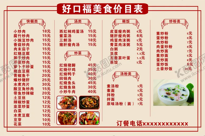 共享素材,尺寸大小是0*0像素,美食价目表是由平面广告设计师lmy上传,浏览本次作品的您可能还对美食,菜单,价目表,设计,排版,菜,点菜单,宣传单,,平面广告,,平面广告感兴趣。