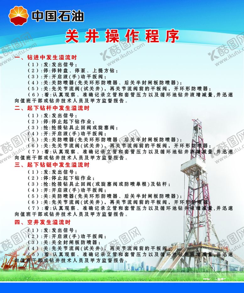 原创共享素材,尺寸大小是2835*3402像素,关井操作规程是由平面广告设计师undercall上传,浏览本次作品的您可能还对石油展板,石油制度牌,软关井操作,软关井程序牌,石油工程制度,平面广告,,平面广告感兴趣。