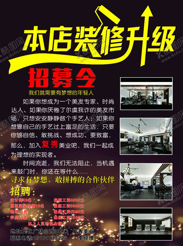 像素,装修升级是由平面广告设计师daihaolr上传,浏览本次作品的您可能还对装修,升级,招募令,招聘,店铺装修,,平面广告,,平面广告感兴趣。