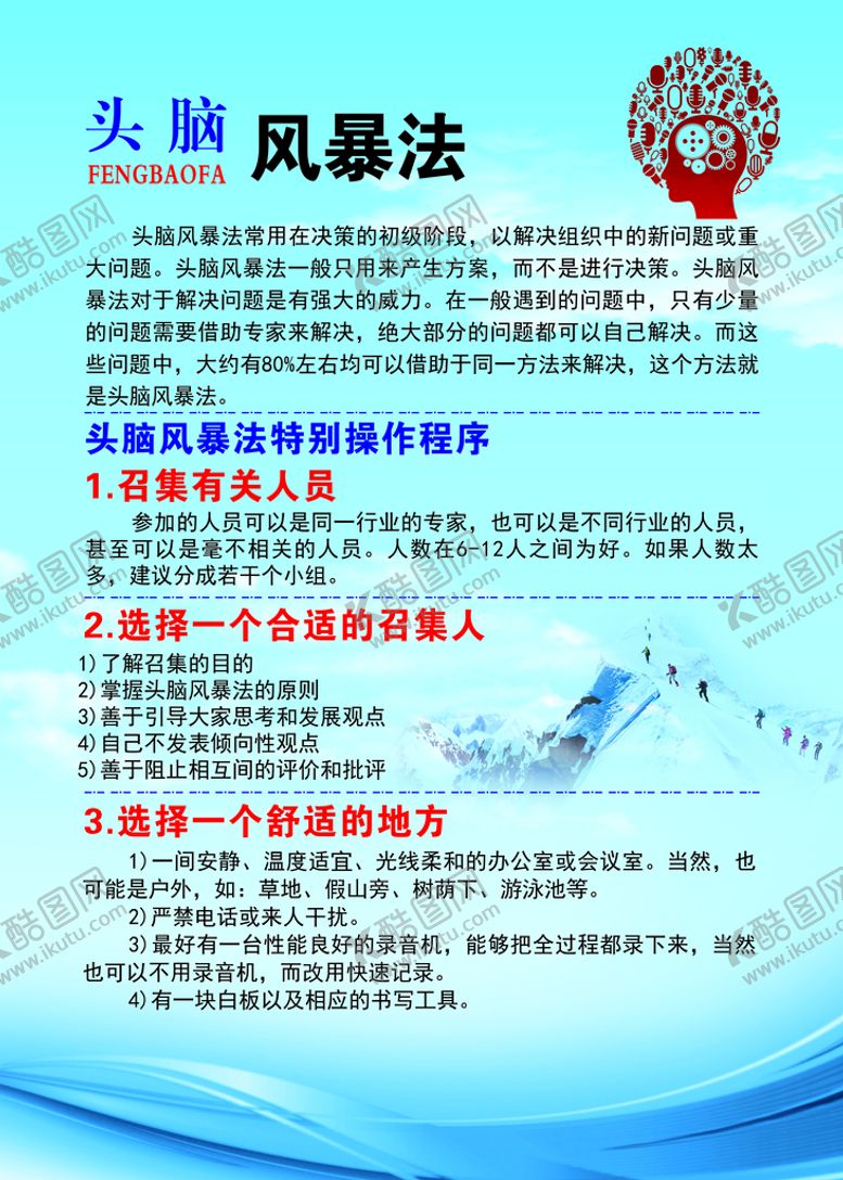 共享素材,尺寸大小是4331*6063像素,头脑风暴法是由平面广告设计师sun383407949上传,浏览本次作品的您可能还对头脑风暴法,头脑风暴,头脑,蓝色制度,设计,办公室展板,公司制度,公司展板,企业管理,企业制度,企业文化,,平面广告,,平面广告感兴趣。