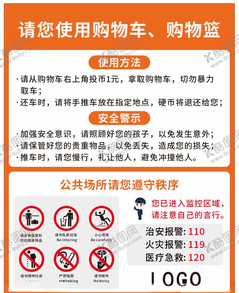 酷图网为你提供精美好看的素材模板下载,本次平面广告作品主题是购物车手推车购物篮注意事项提示,素材ID编号是89236504262053097736,格式是CDR,建议使用打开编辑,或是"通过网上查询一下对应格式的打开软件";该购物车手推车购物篮注意事项提示素材大小是7.67 MB,素材主要颜色以白色为主,素材分享方式属于