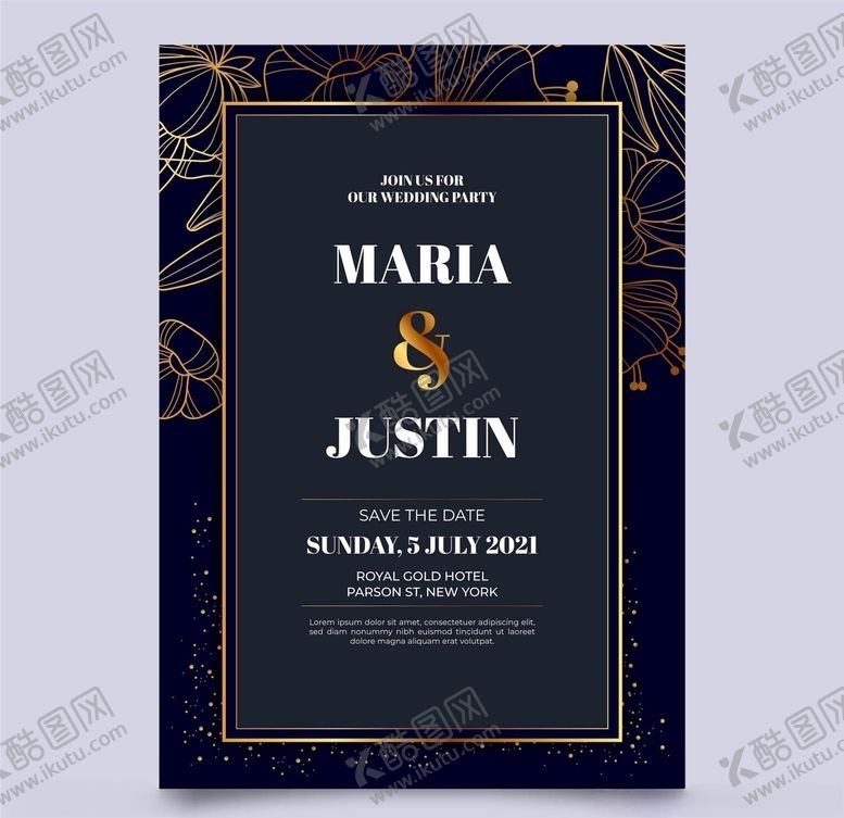 酷图网为你提供精美好看的素材模板下载,本次平面广告作品主题是婚礼结婚请柬邀请函,素材ID编号是90428104092254064161,格式是AI,建议使用打开编辑,或是"通过网上查询一下对应格式的打开软件";该婚礼结婚请柬邀请函素材大小是498.97 KB,素材主要颜色以黑色为主,素材分享方式属于