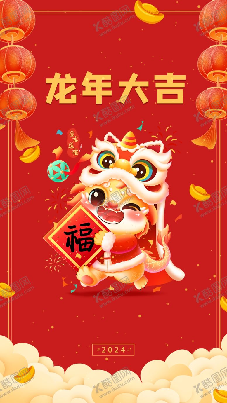 共享素材,尺寸大小是1080*1920像素,龙年大吉海报是由平面广告设计师wlhlesley上传,浏览本次作品的您可能还对新年,龙年,新年快乐,龙年红包,可爱海报,卡通龙,新年海报,卡通,龙年送福,龙年大吉,祥云,金色文字,平面广告,,平面广告感兴趣。