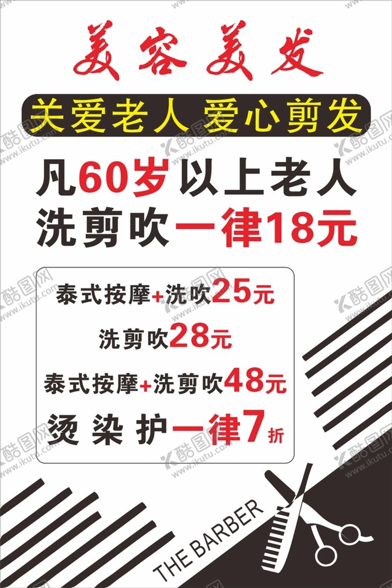 像素,美容美发是由平面广告设计师luodks上传,浏览本次作品的您可能还对美容美发,关爱老人,爱心剪发,活动,打折,优惠,泰式按摩,平面广告,,平面广告感兴趣。