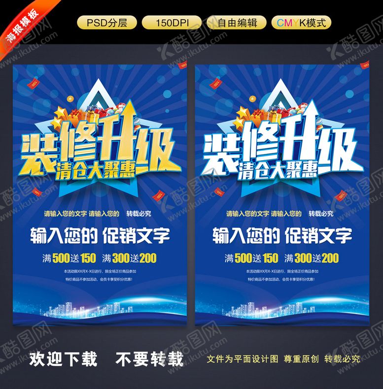 酷图网为你提供精美好看的素材模板下载,本次平面广告作品主题是装修升级,素材ID编号是94072309191526071208,格式是PSD,建议使用打开编辑,或是"通过网上查询一下对应格式的打开软件";该装修升级素材大小是78.77 MB,素材主要颜色以灰色为主,素材分享方式属于