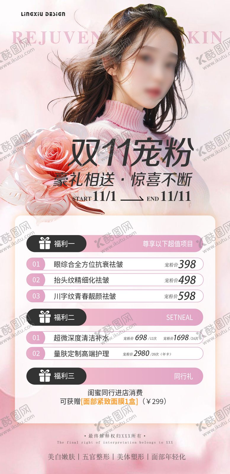 共享素材,尺寸大小是1080*2228像素,双11宠粉项目卡是由平面广告设计师lhcllk上传,浏览本次作品的您可能还对海报,医美,双11,宠粉,活动,卡项,豪礼,惊喜,活动,项目,,平面广告,,平面广告感兴趣。