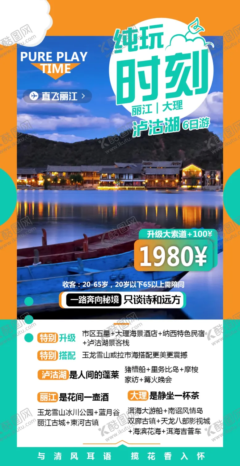 共享素材,尺寸大小是750*1454像素,云南大理丽江泸沽湖是由平面广告设计师judas8023上传,浏览本次作品的您可能还对泸沽湖,云南丽江,旅行,海报,高端,个性,大气,清爽,夏日,出游,雪山,酒店,猪槽船,云南,海报设计,旅游海报,西昌,螺髻山,九十九里温泉,瀑布,湖,水,走婚桥,情人滩,孟获城,草海,客栈,摩梭,藏羌,川藏,重庆,平面广告,,平面广告感兴趣。