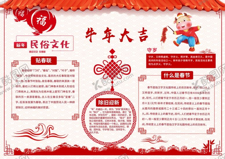 共享素材,尺寸大小是7087*5020像素,牛年大吉手抄报是由免抠元素设计师zhenming1215上传,浏览本次作品的您可能还对手抄报,新春快乐,牛年大吉,中国结,民俗文化,免抠元素,,免抠元素感兴趣。