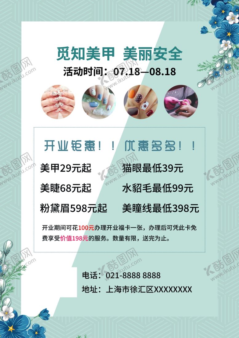 原创共享素材,尺寸大小是2480*3508像素,美甲是由免抠元素设计师zhanchuangye上传,浏览本次作品的您可能还对美甲,美容,美甲店,美容店,时尚生活,美容会所,,免抠元素,,免抠元素感兴趣。