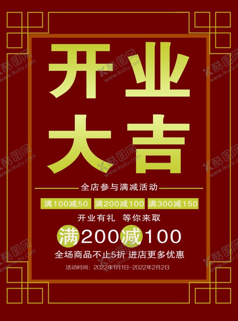 酷图网为你提供精美好看的素材模板下载,本次平面广告作品主题是开业大吉,素材ID编号是97853012060037046502,格式是PSD,建议使用打开编辑,或是"通过网上查询一下对应格式的打开软件";该开业大吉素材大小是833.13 KB,素材主要颜色以黑色为主,素材分享方式属于