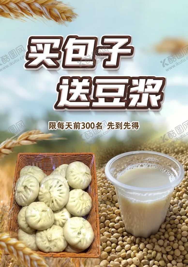 共享素材,尺寸大小是1240*1754像素,优惠促销包子豆浆是由平面广告设计师a63421118上传,浏览本次作品的您可能还对买包子送豆浆,促销,包子,豆浆,优惠,食品,平面广告,,平面广告感兴趣。