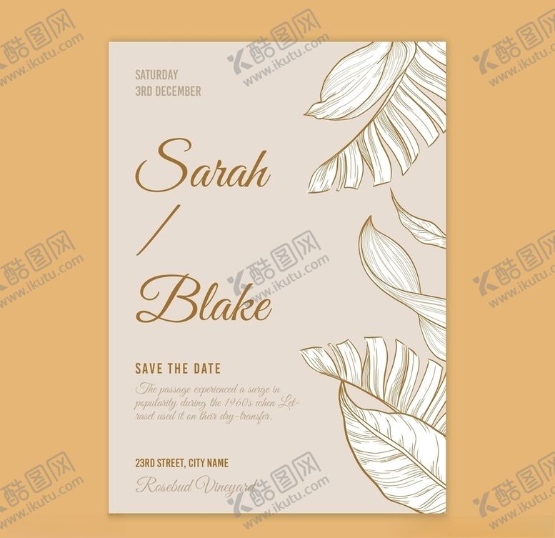 酷图网为你提供精美好看的素材模板下载,本次平面广告作品主题是婚礼结婚请柬邀请函,素材ID编号是98848303101419166055,格式是AI,建议使用打开编辑,或是"通过网上查询一下对应格式的打开软件";该婚礼结婚请柬邀请函素材大小是1.53 MB,素材主要颜色以粉色为主,素材分享方式属于