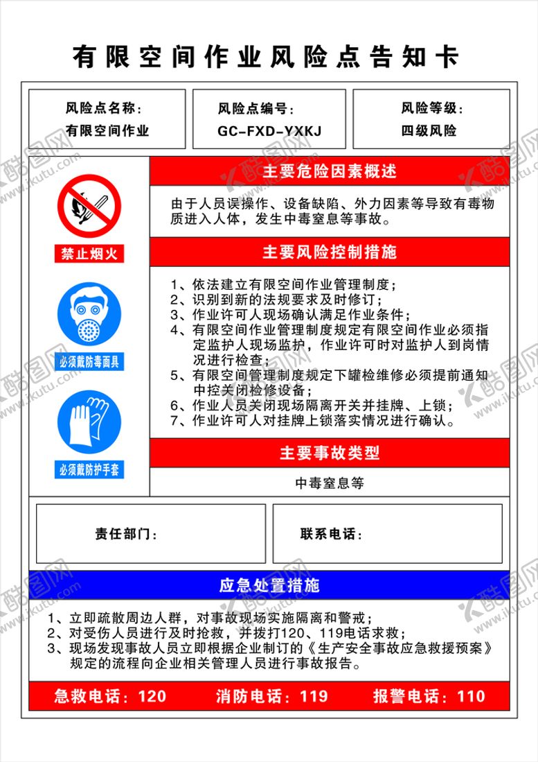 像素,险点告知卡是由平面广告设计师Fish_FF1314上传,浏览本次作品的您可能还对有限空间,作业风险,告知卡,禁止烟火,防毒面具,防护手套,应急处理措施,急救电话,消防,报警,危险,,平面广告,,平面广告感兴趣。